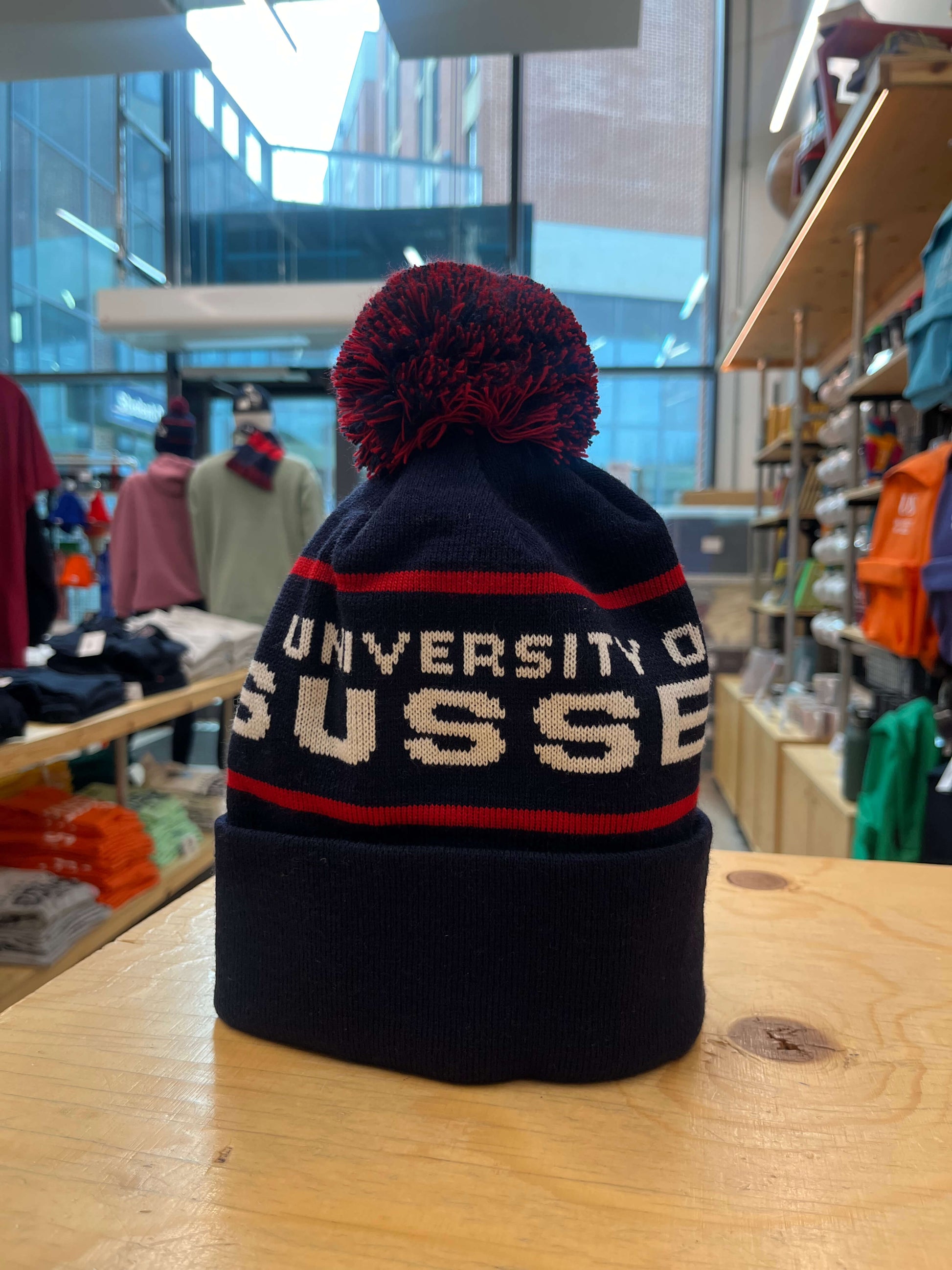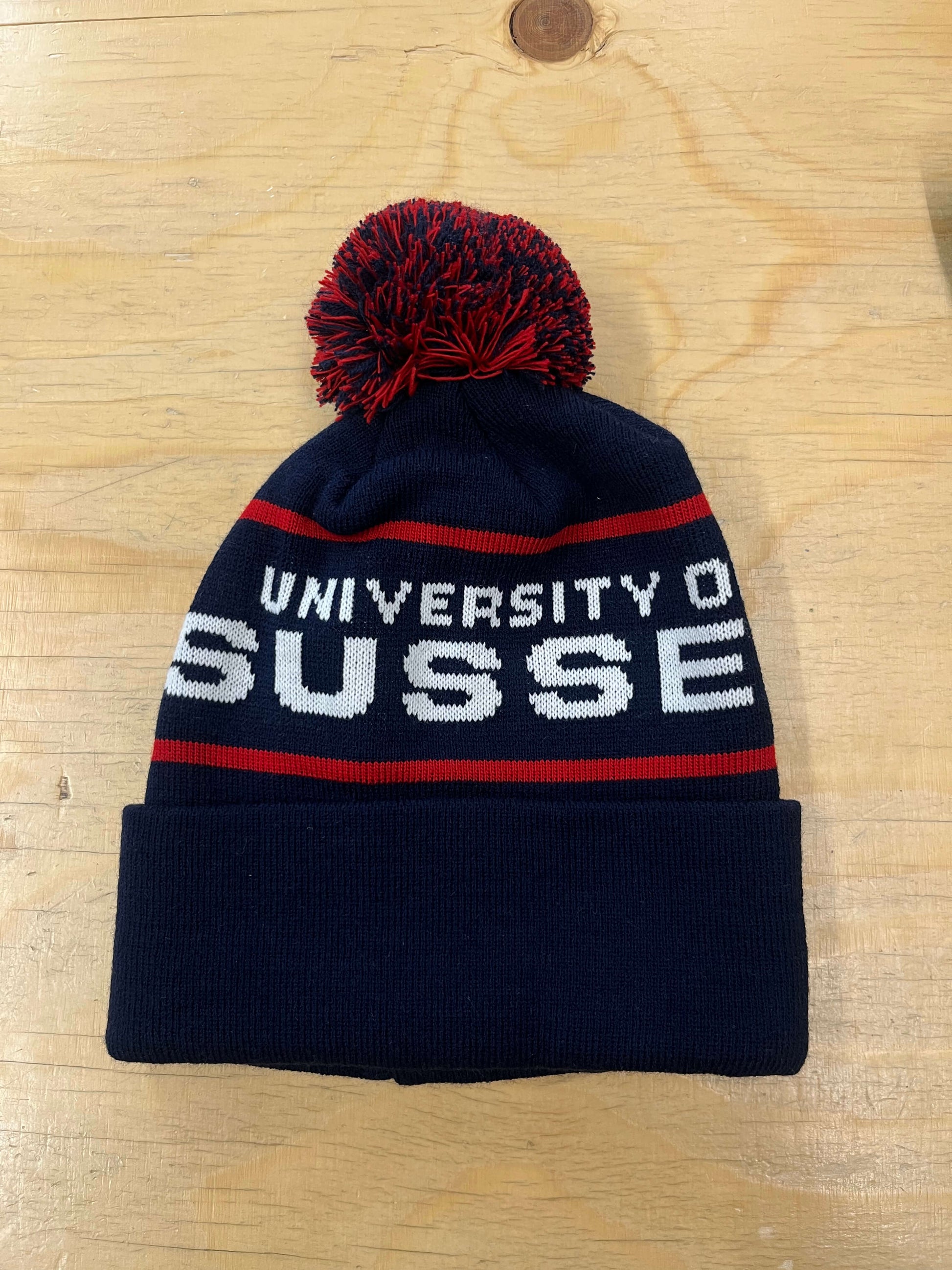 A warm hat in the Sussex colours perfect for the cold weather. It'll keep your head and ears warm, comfy with its nice fabric with a cute pom pom as a little cherry on top!