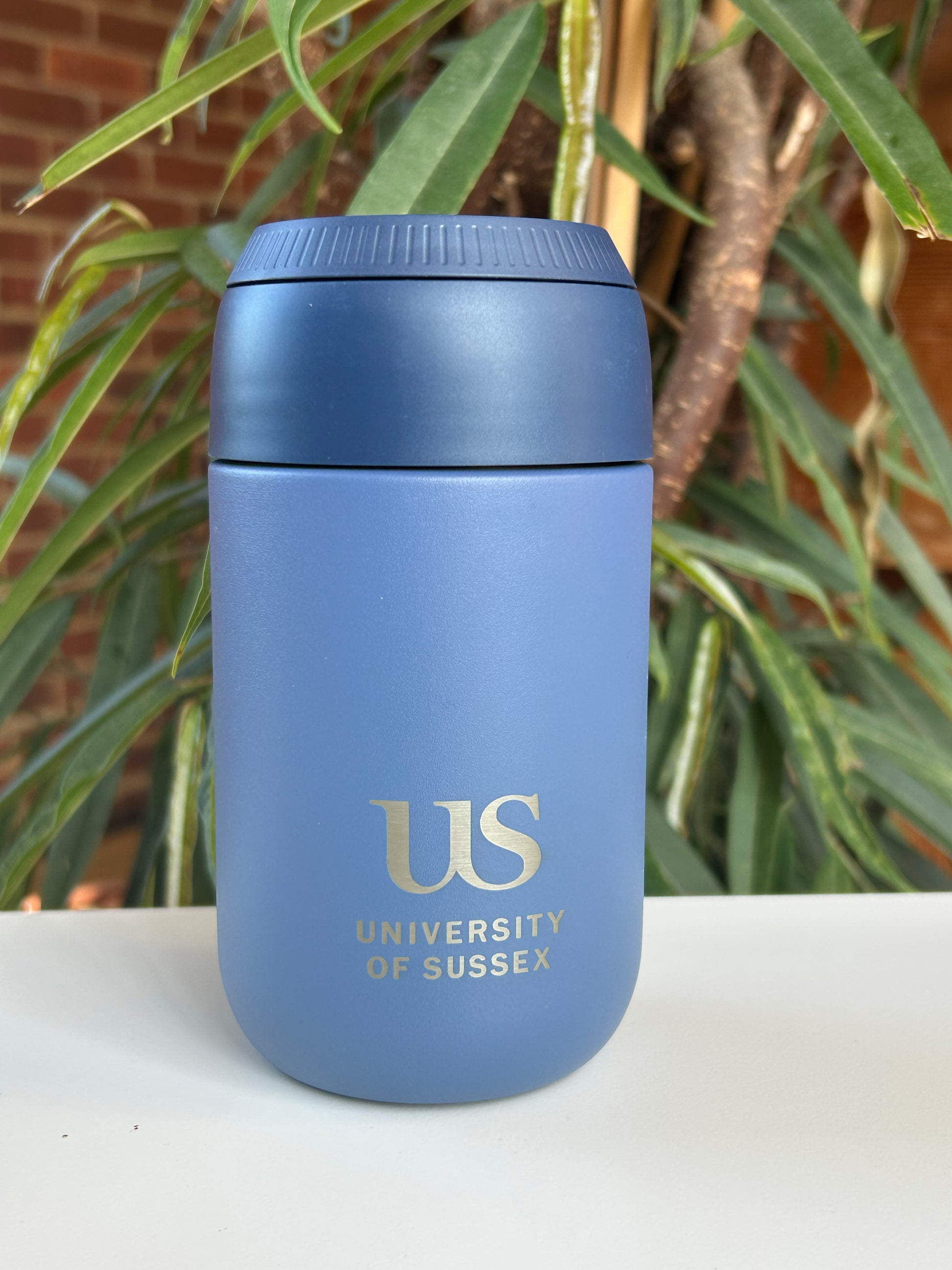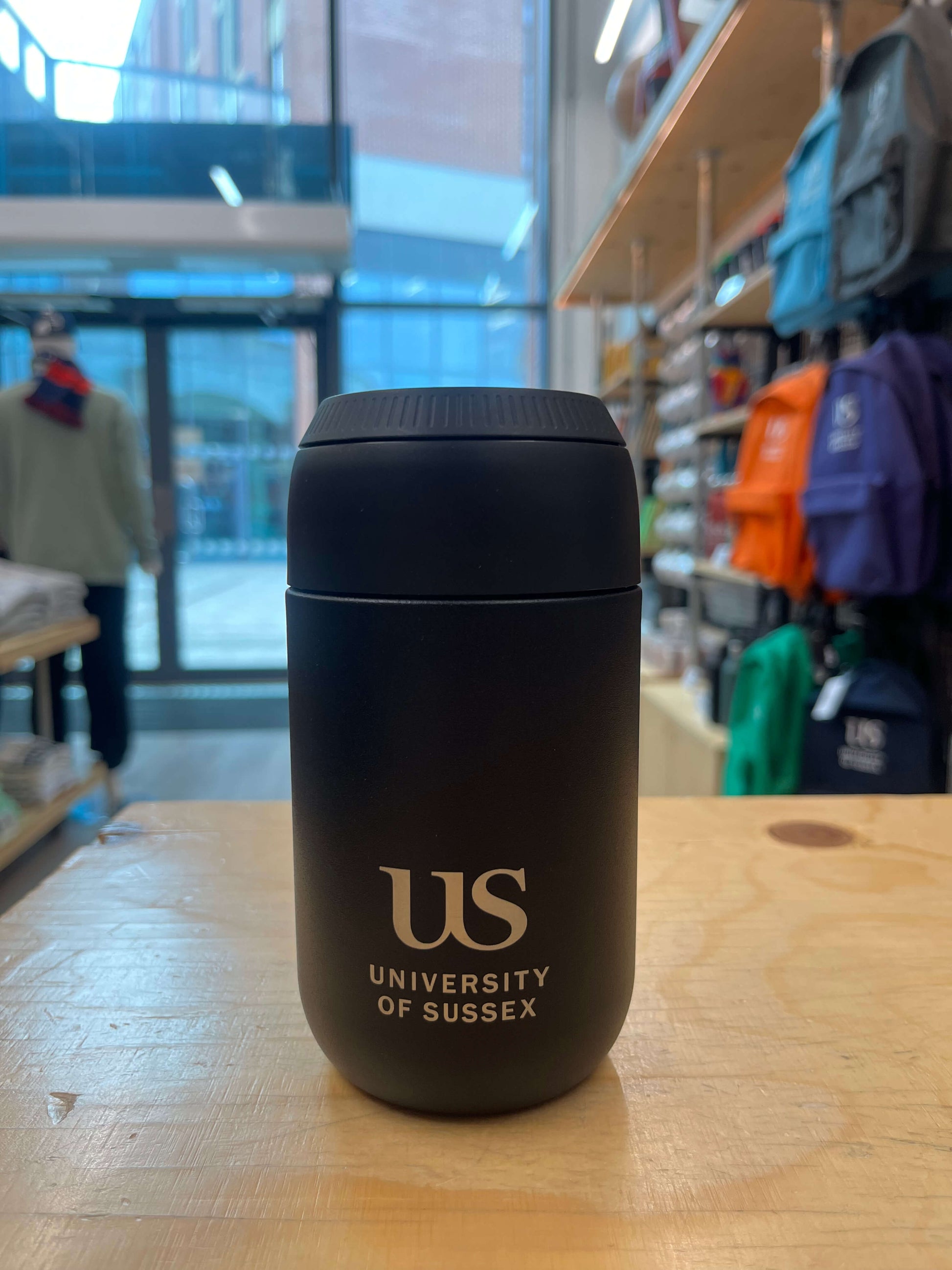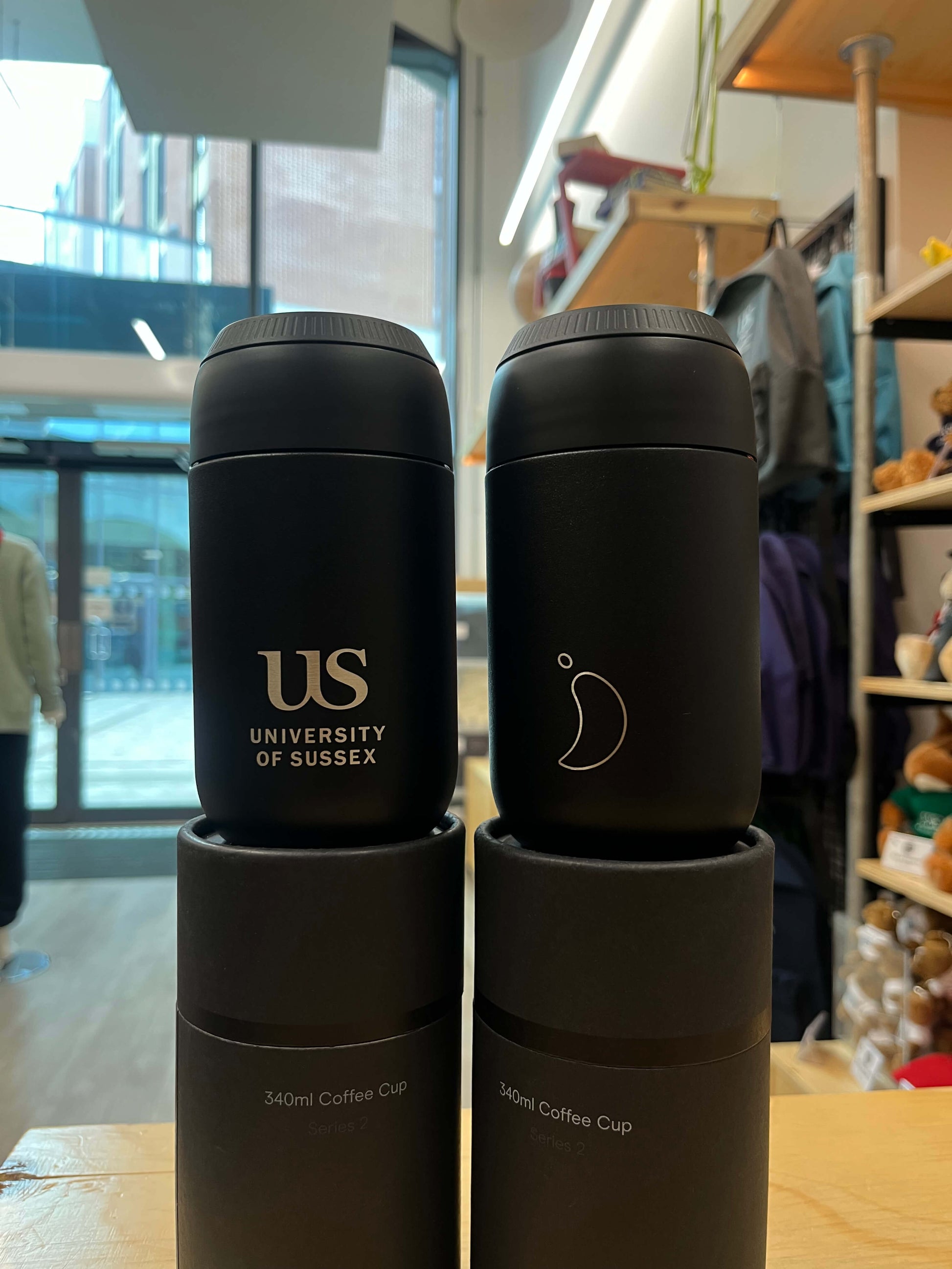 Our all-new Chilly's Series 2 coffee cup with University of Sussex logo engraving. 340ml capacity.